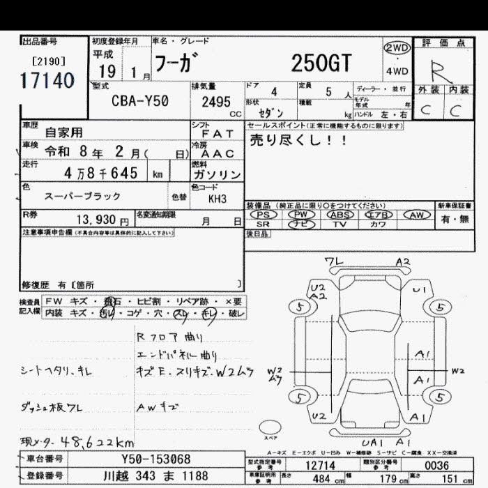 NISSAN FUGA 250GT - лот 17140
