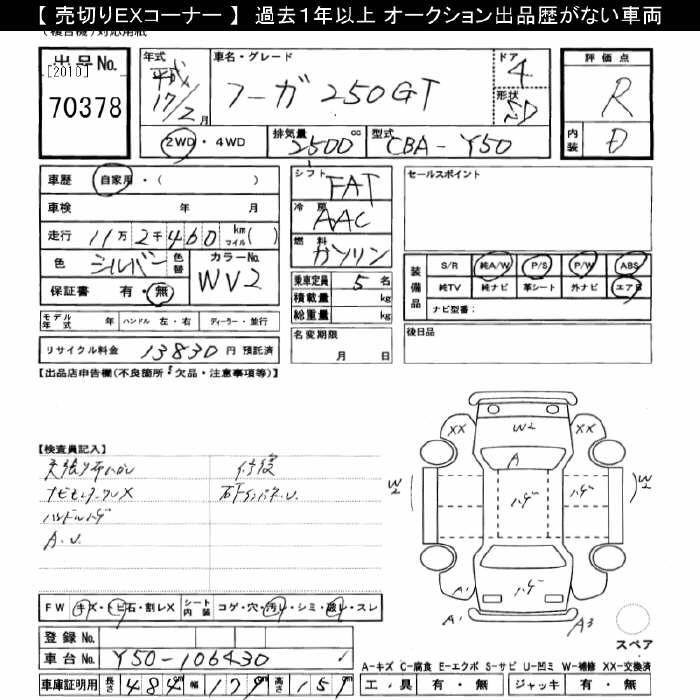 NISSAN FUGA 250GT - лот 70378