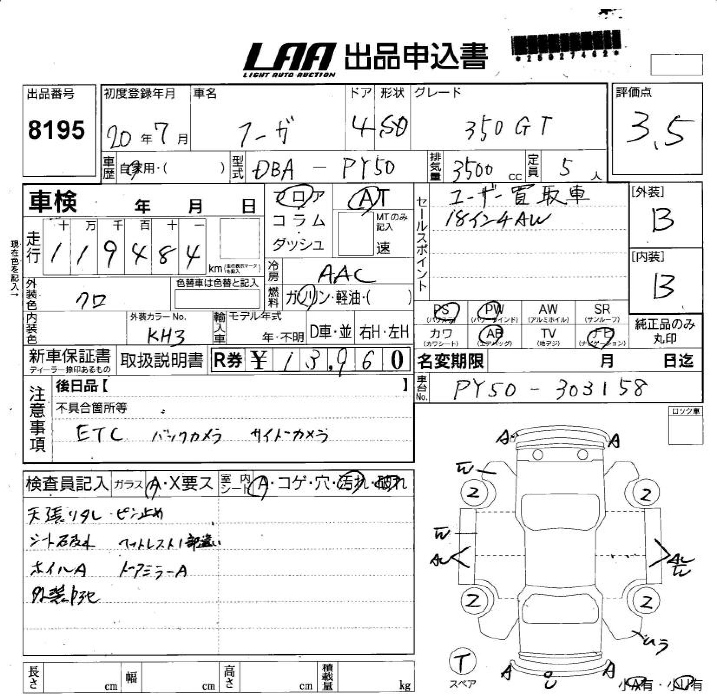 NISSAN FUGA 350GT - лот 8195