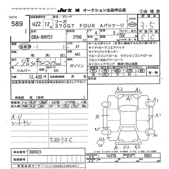 NISSAN FUGA 4WD 370GT FOUR A PACKAGE - лот 589