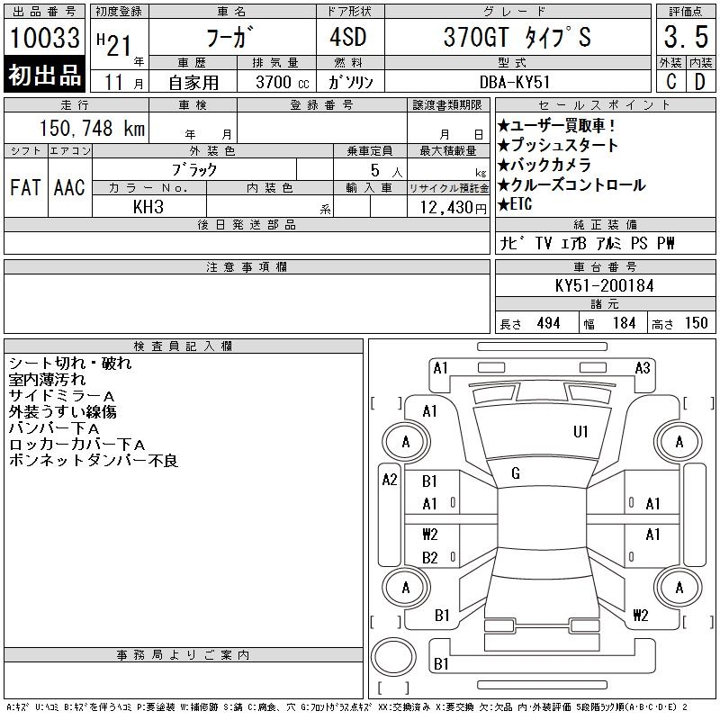 NISSAN FUGA 370GT TYPE S - лот 10033