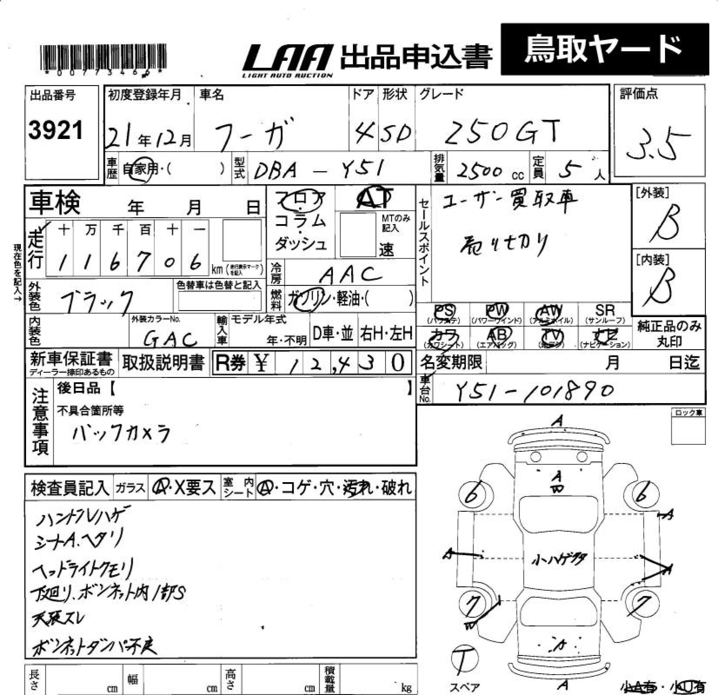 NISSAN FUGA - лот 3921