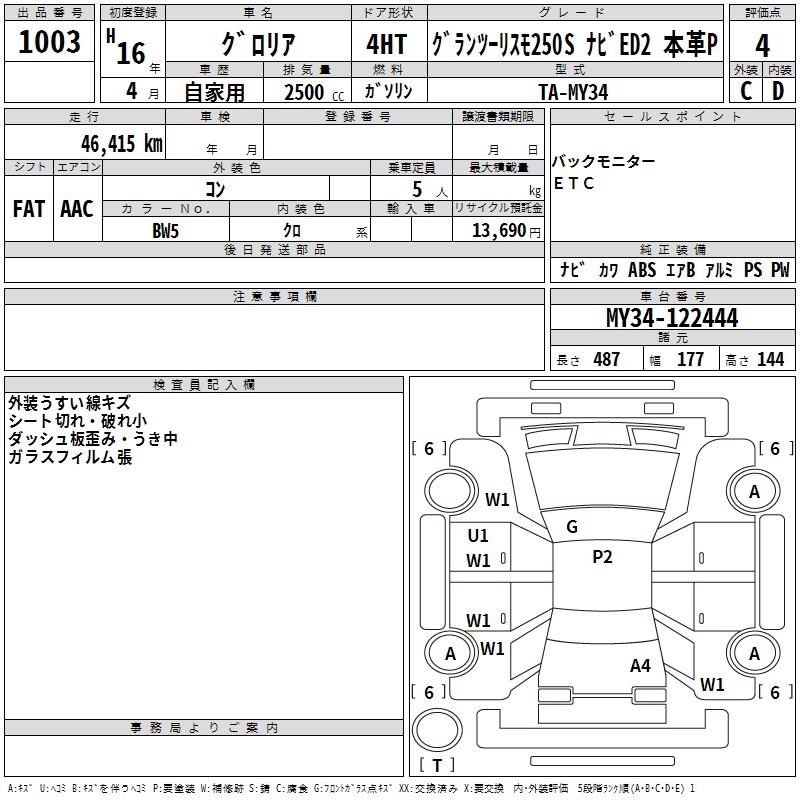NISSAN GLORIA GRANZ 250S NAVIGATION ED2 LEATHER P - лот 1003