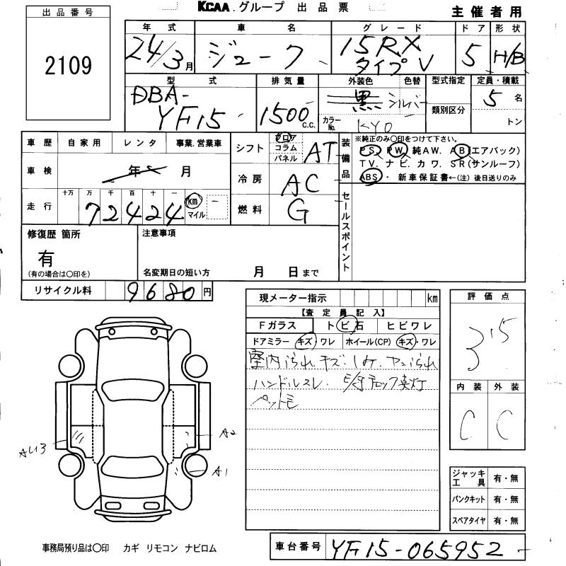 NISSAN JUKE 15RX TYPE V - лот 2109