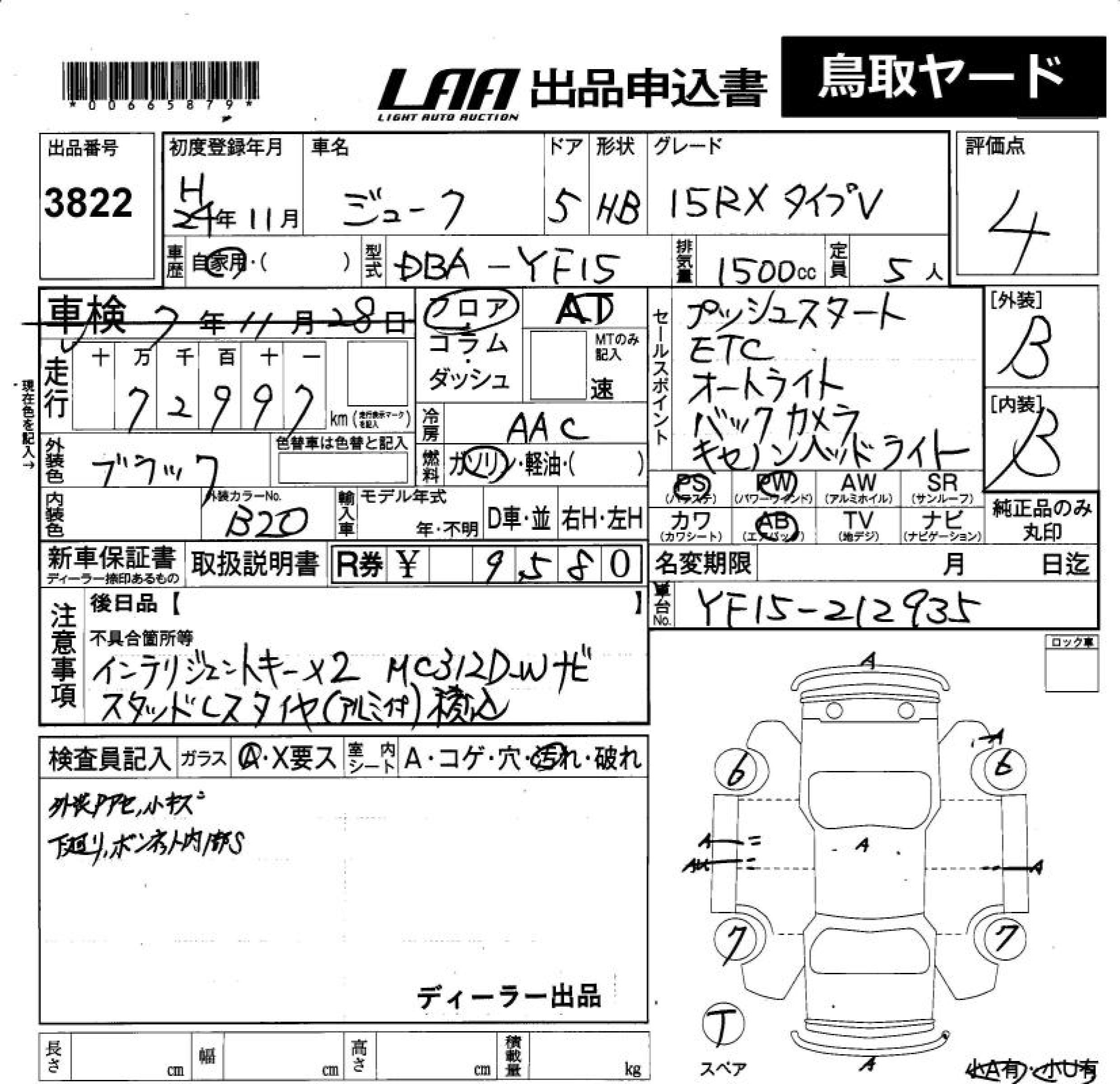 NISSAN JUKE 15RX TYPE V - лот 3822