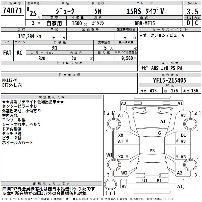 NISSAN JUKE 15RS TYPE V - лот 74071