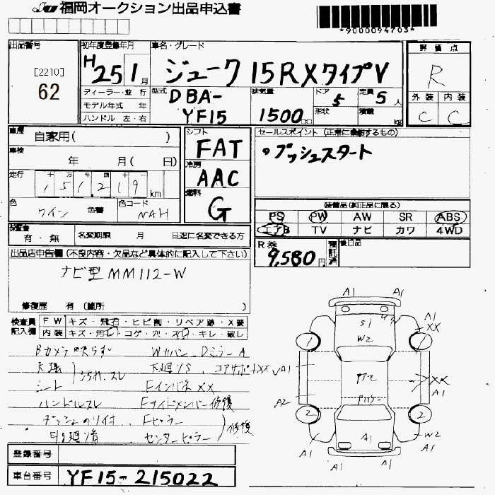 NISSAN JUKE 15RS TYPE V - лот 62