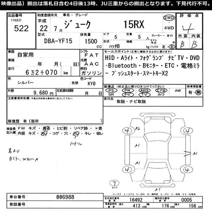 NISSAN JUKE 15RX - лот 522
