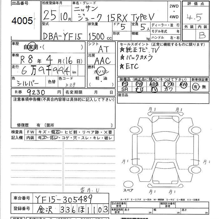 NISSAN JUKE 15RX TYPE V - лот 4005