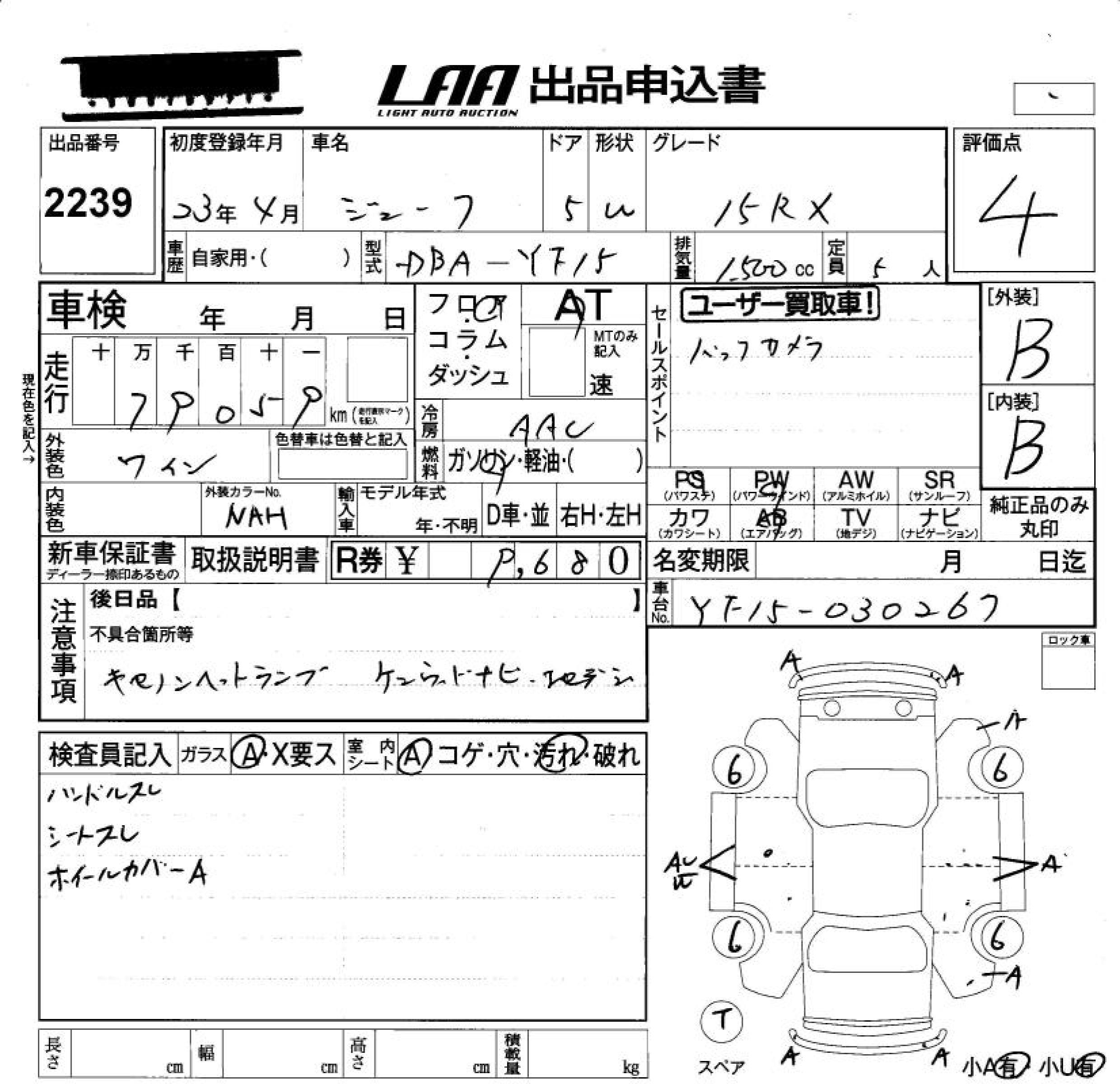 NISSAN JUKE 15RX - лот 2239