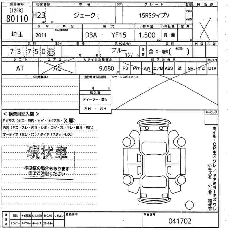 NISSAN JUKE 15RS TYPE V - лот 80110