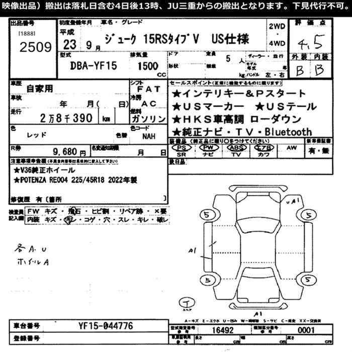 NISSAN JUKE 15RS TYPE V US USE - лот 2509