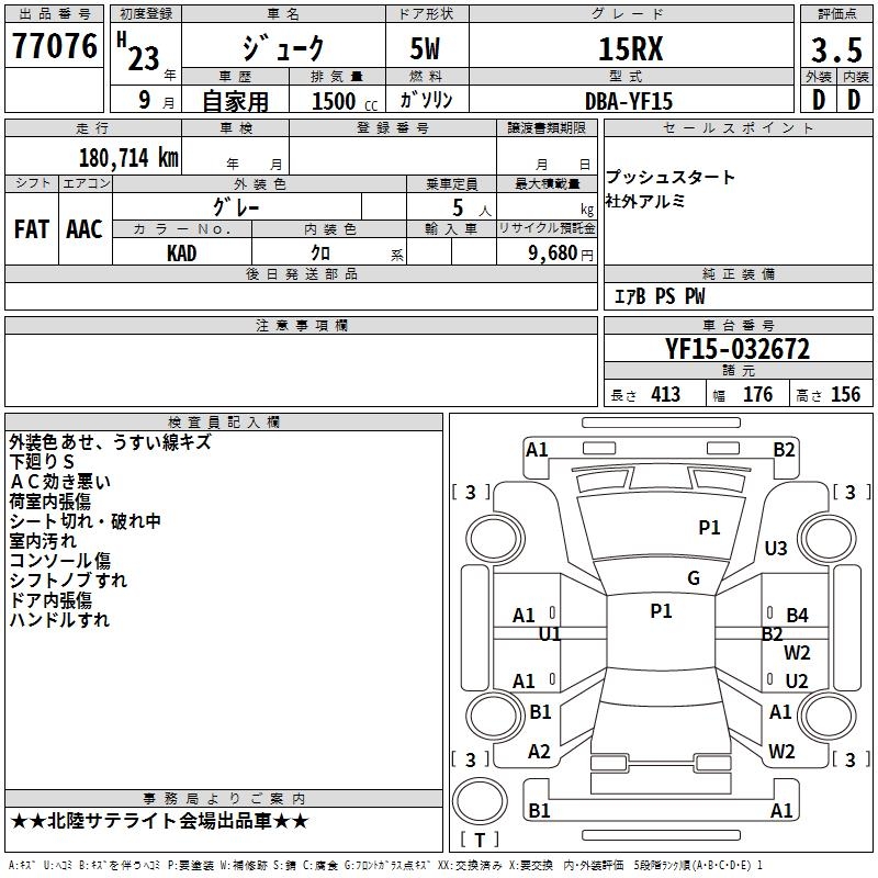 NISSAN JUKE 15RX - лот 77076