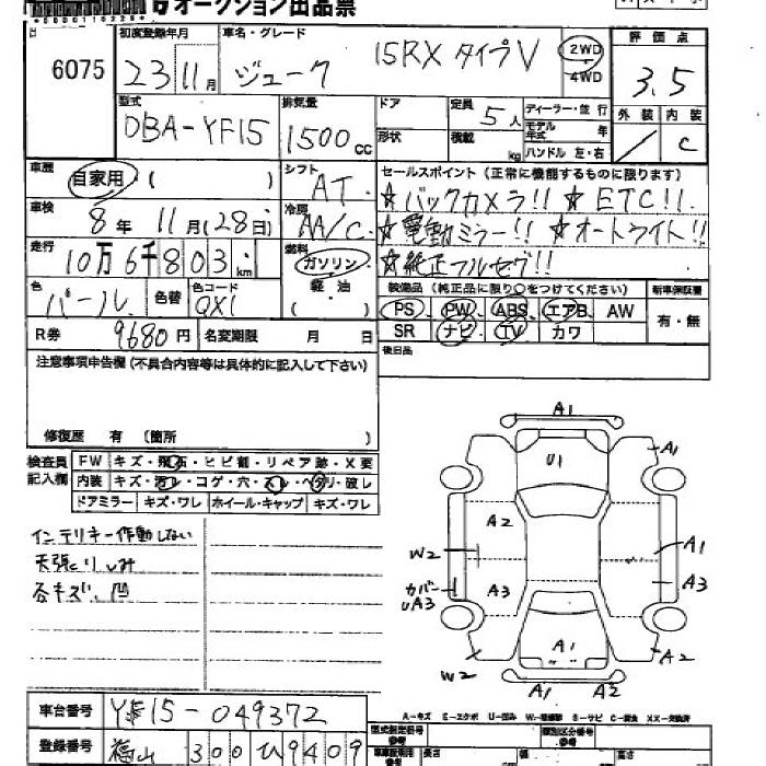 NISSAN JUKE 15RX TYPE V - лот 6075