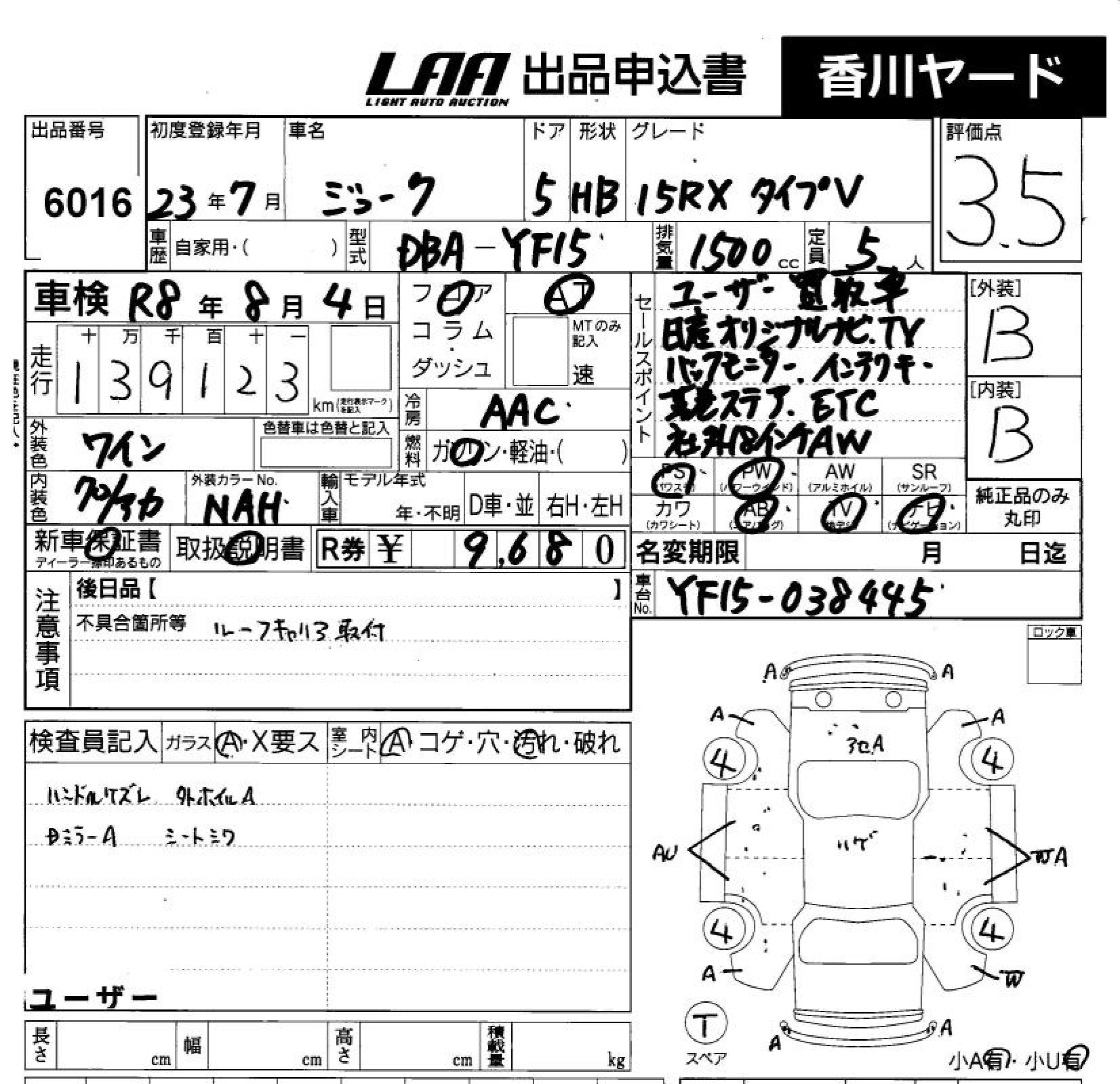 NISSAN JUKE 15RX TYPE V - лот 6016
