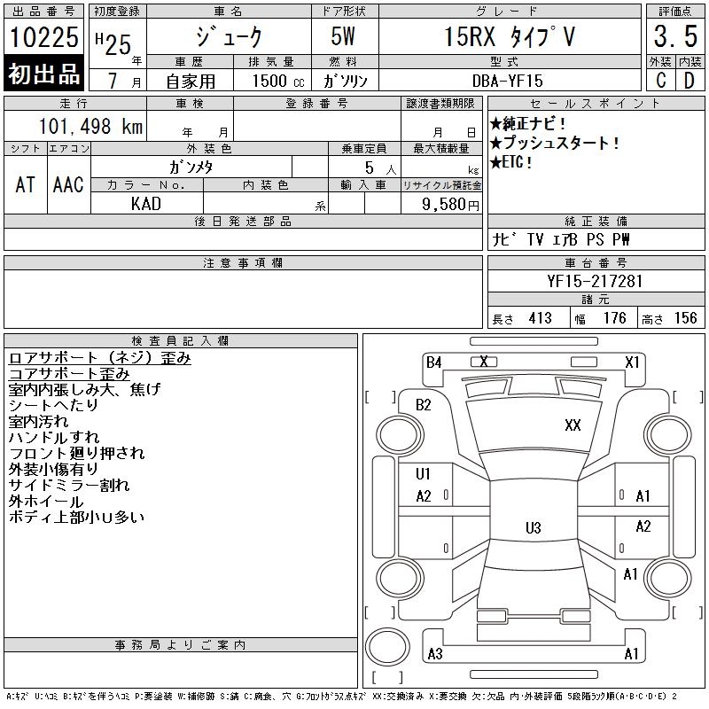 NISSAN JUKE 15RX TYPE V - лот 10225