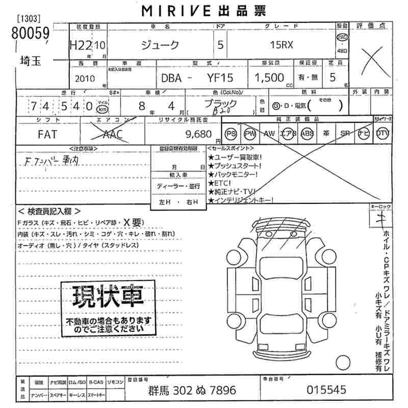 NISSAN JUKE 15RX - лот 80059