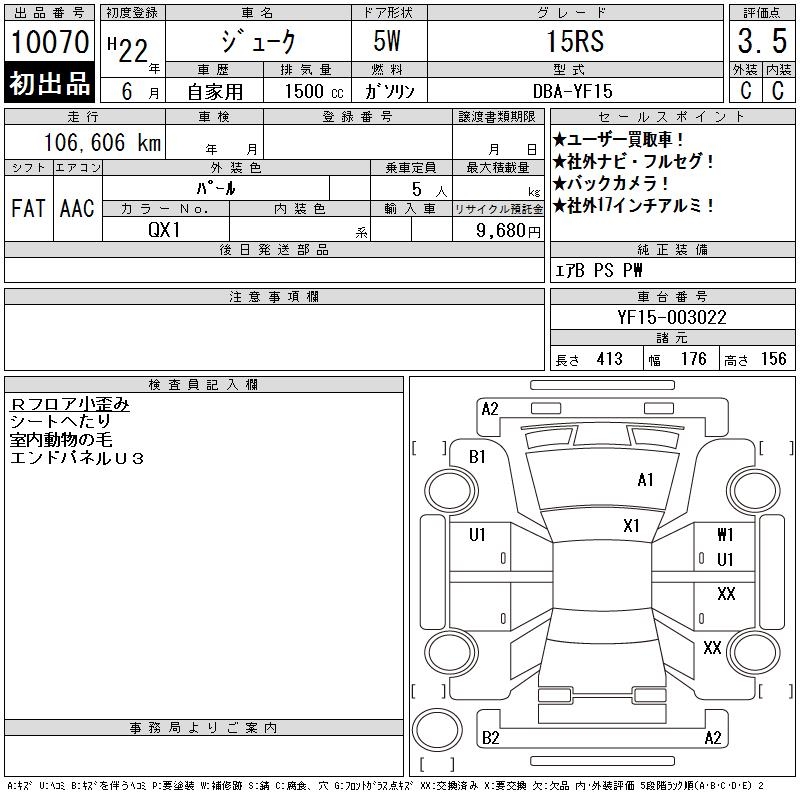 NISSAN JUKE 15RS - лот 10070