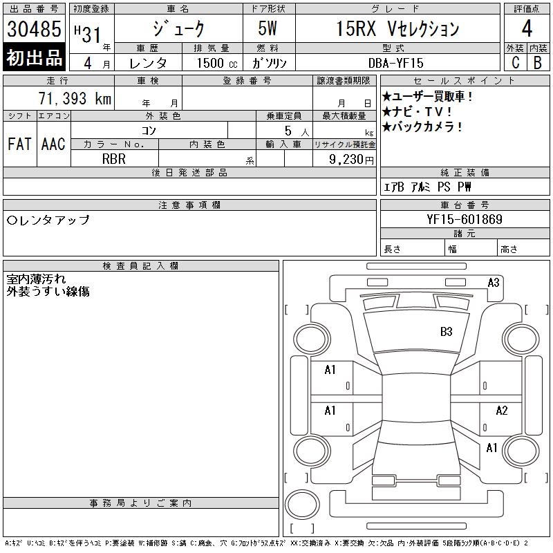 NISSAN JUKE 15RX V SELECTION - лот 30485
