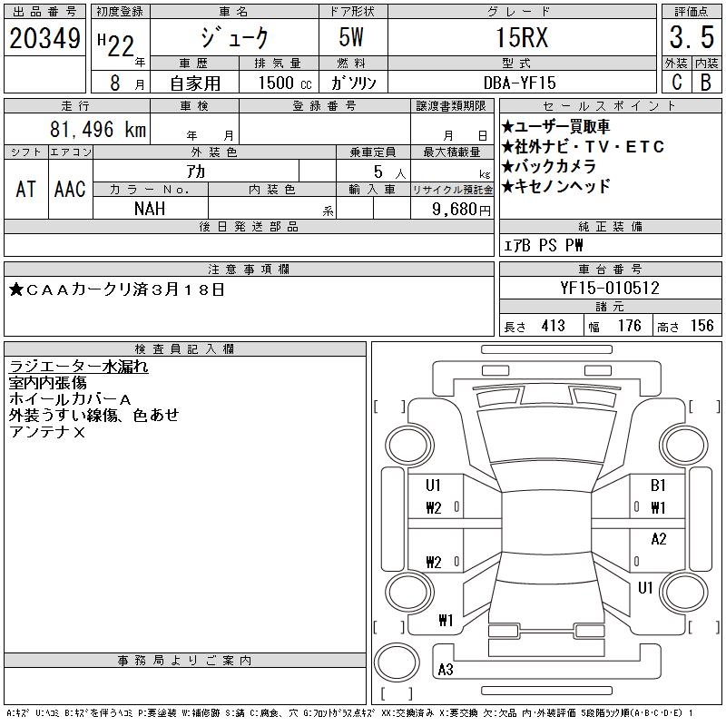 NISSAN JUKE - лот 20349