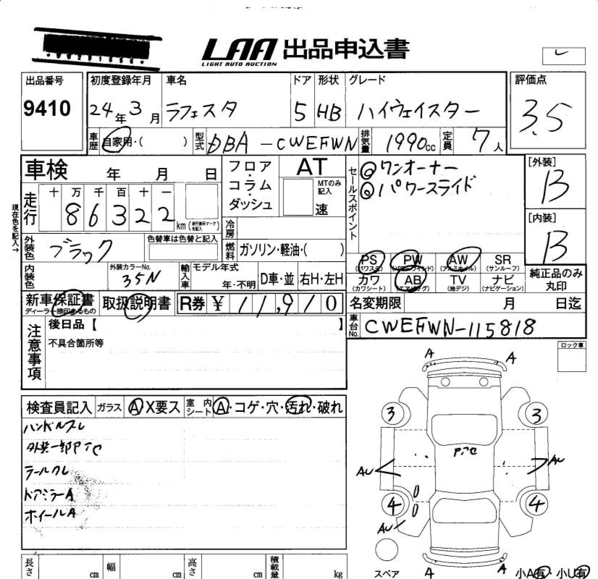 NISSAN LAFESTA HIGHWAY STAR - лот 9410