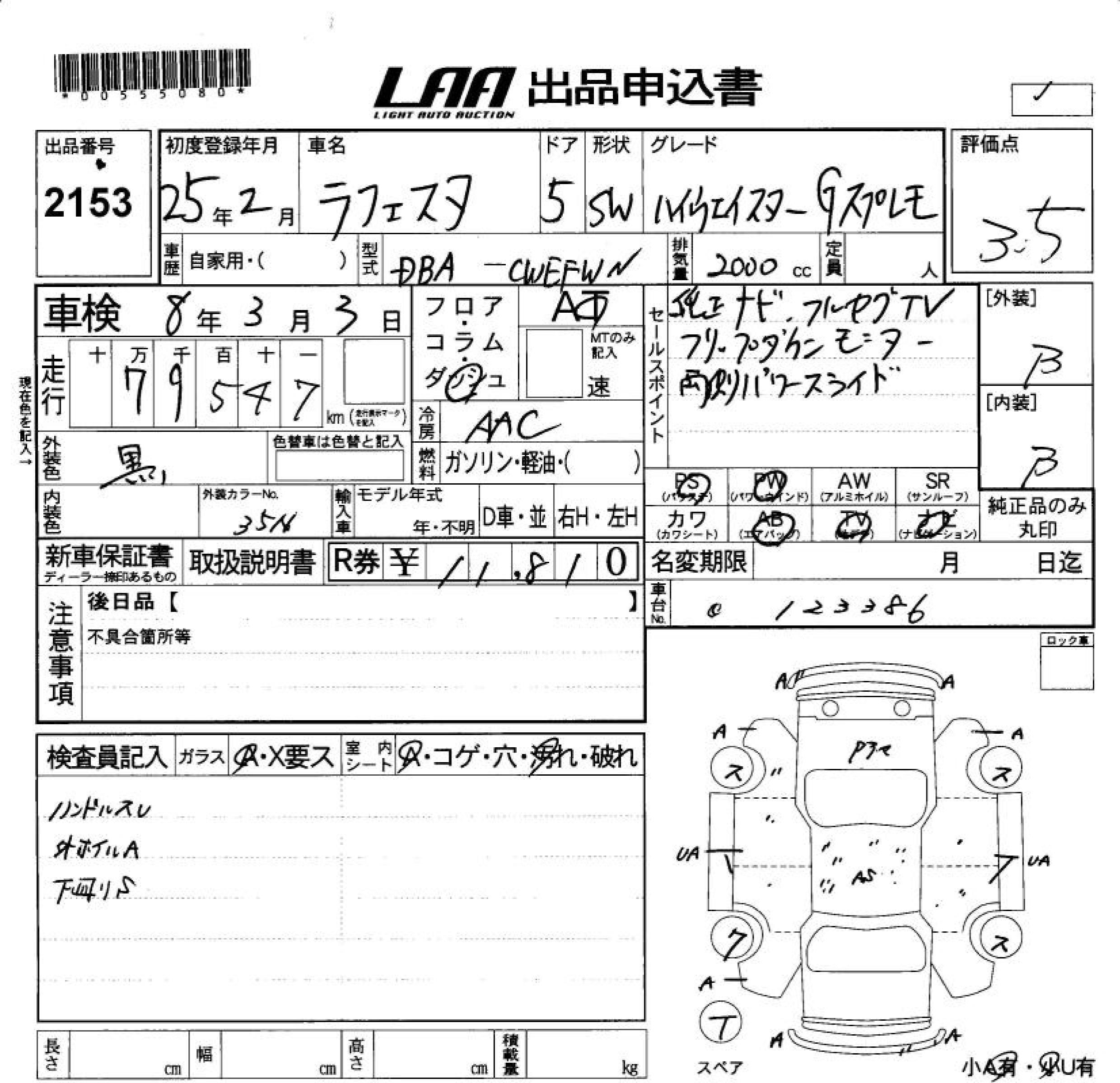 NISSAN LAFESTA HIGHWAY STAR GS PRE MO - лот 2153