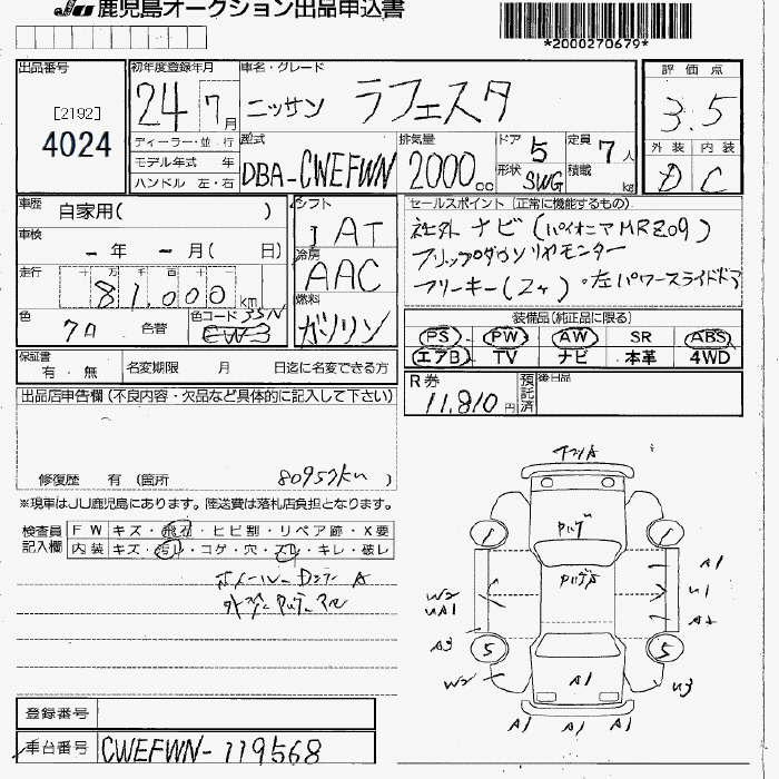 NISSAN LAFESTA - лот 4024