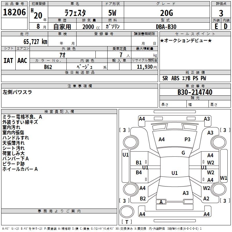 NISSAN LAFESTA 20G - лот 18206