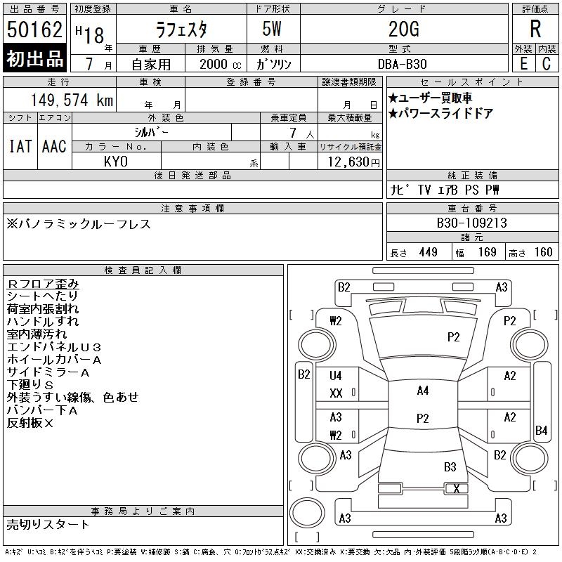 NISSAN LAFESTA 20G - лот 50162