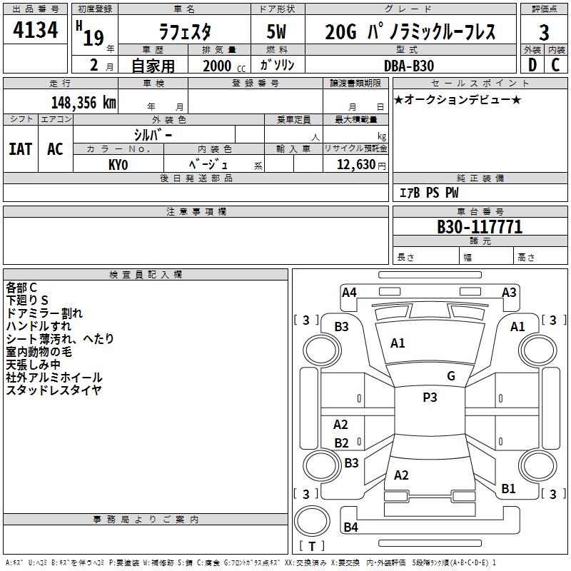 NISSAN LAFESTA 20G PANORAMIC ROOF LESS - лот 4134