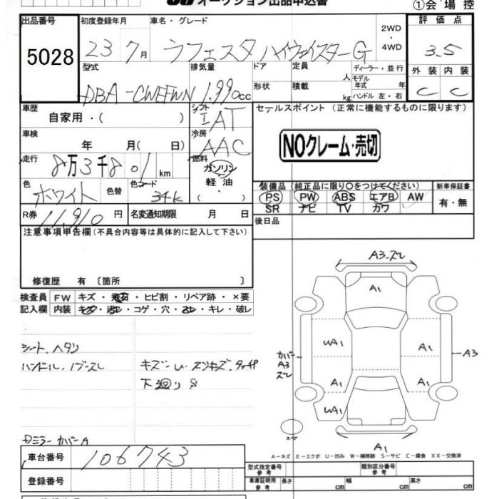 NISSAN LAFESTA HIGHWAY STAR G - лот 5028
