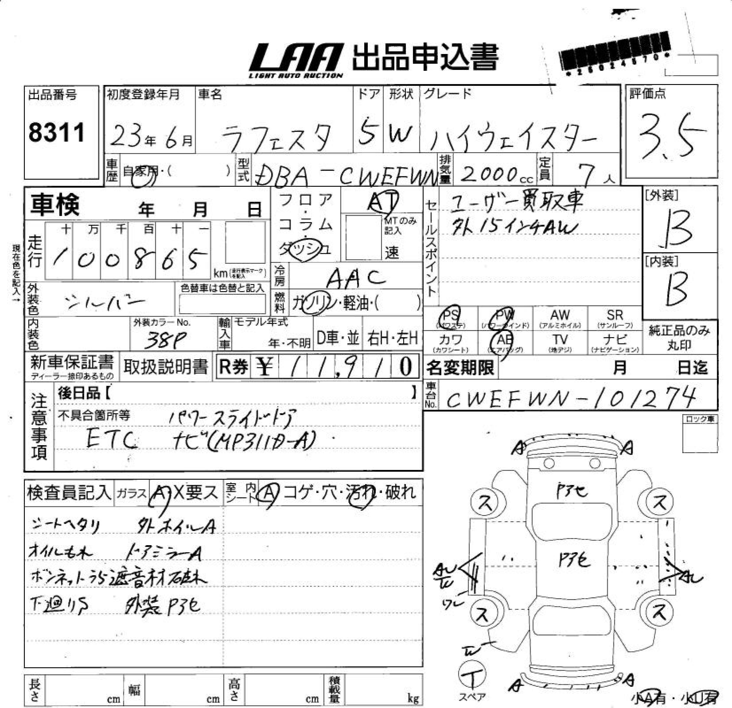 NISSAN LAFESTA HIGHWAY STAR - лот 8311