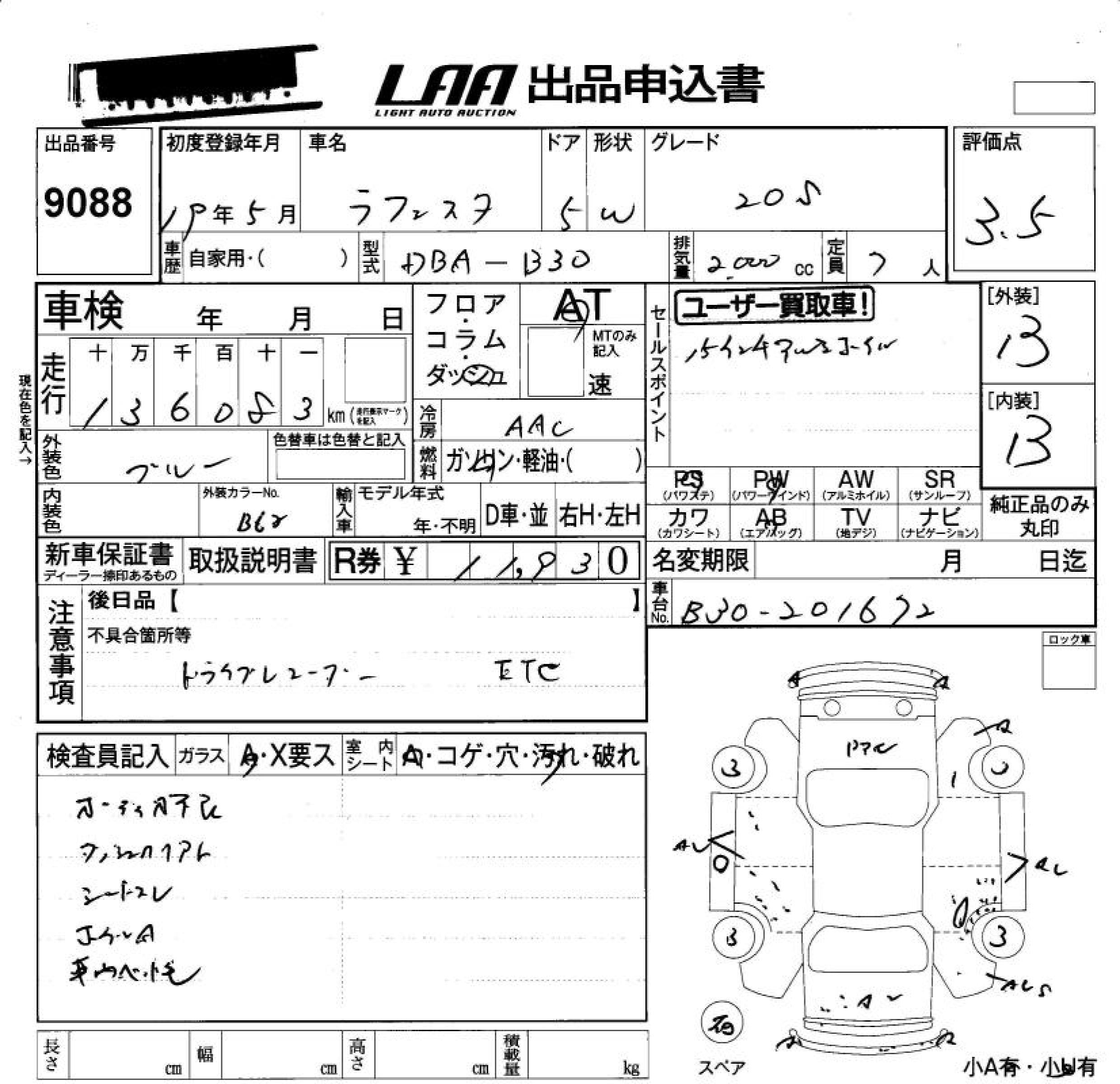 NISSAN LAFESTA 20S - лот 9088