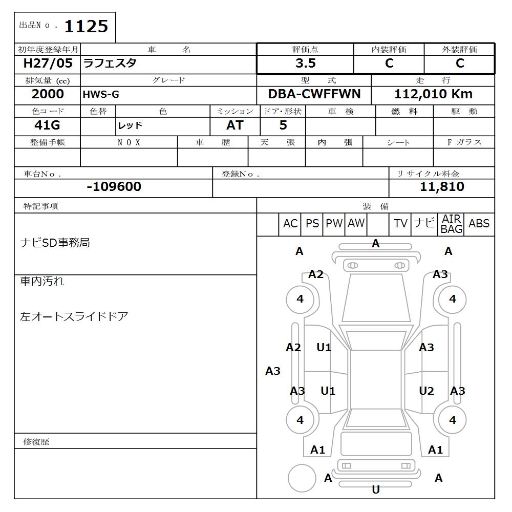 NISSAN LAFESTA HWS-G - лот 1125