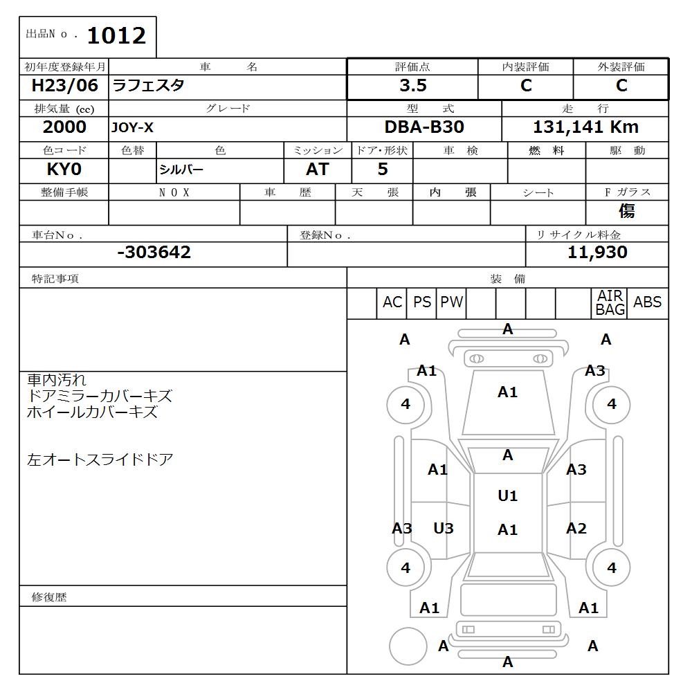 NISSAN LAFESTA - лот 1012