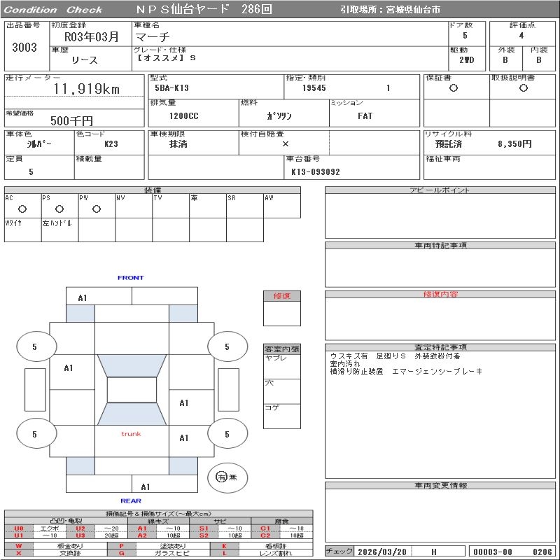 Все аукционы NISSAN MARCH