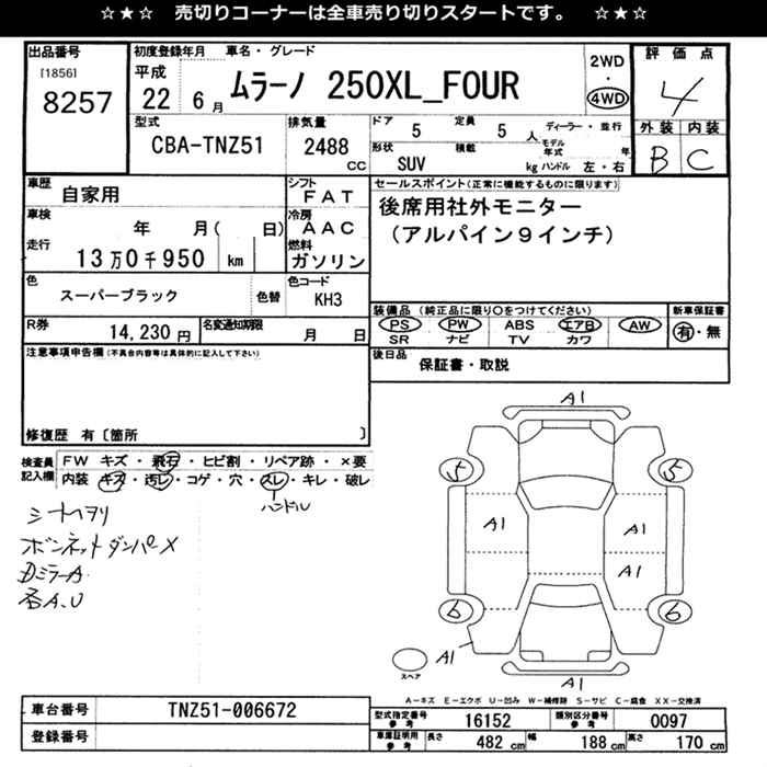 NISSAN MURANO 250XL FOUR - лот 8257