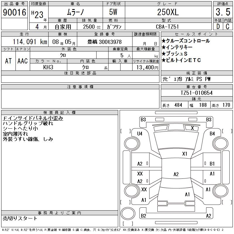 NISSAN MURANO 250XL - лот 90016