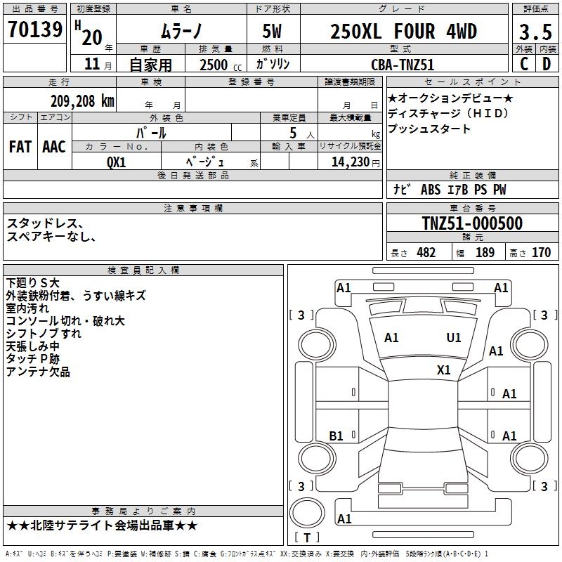 NISSAN MURANO 250XL FOUR 4WD - лот 70139