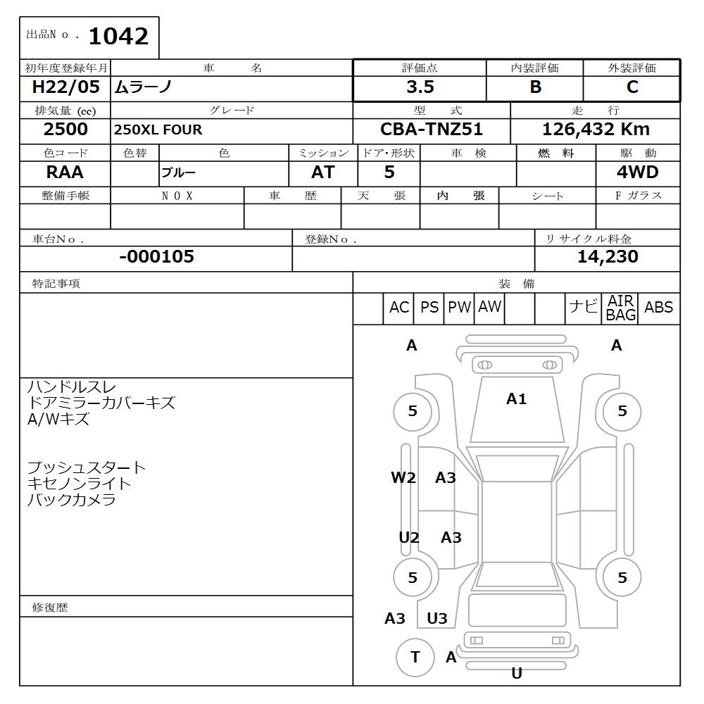 NISSAN MURANO 250XL FOUR - лот 1042