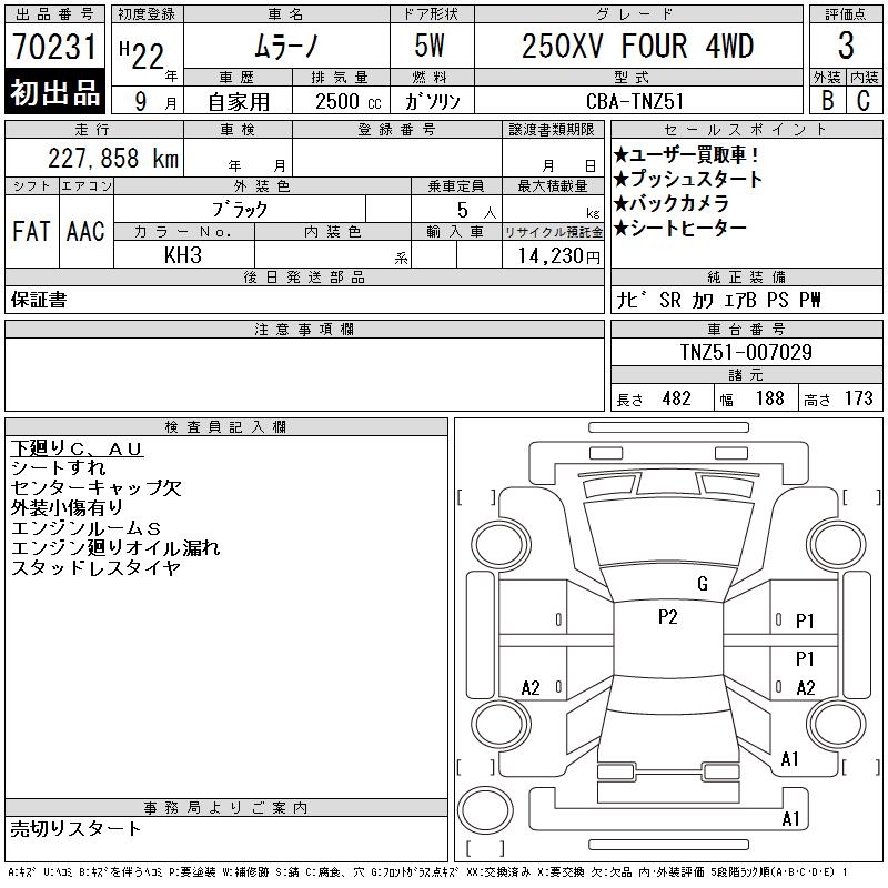 NISSAN MURANO 250XV FOUR 4WD - лот 70231
