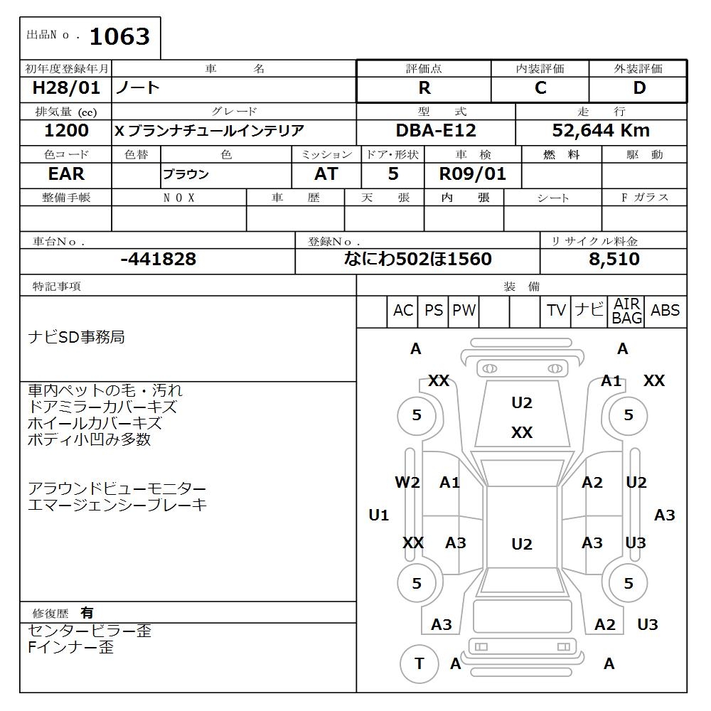 NISSAN NOTE XB RUNNER CHU-RU INTERIOR - лот 1063