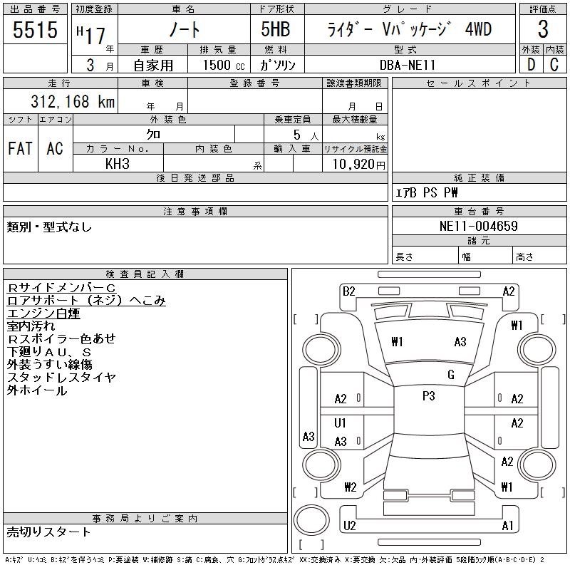 NISSAN NOTE RIDER V PACKAGE 4WD - лот 5515