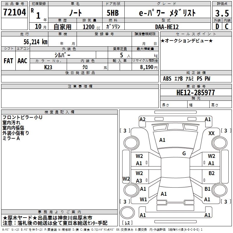 NISSAN NOTE - лот 72104