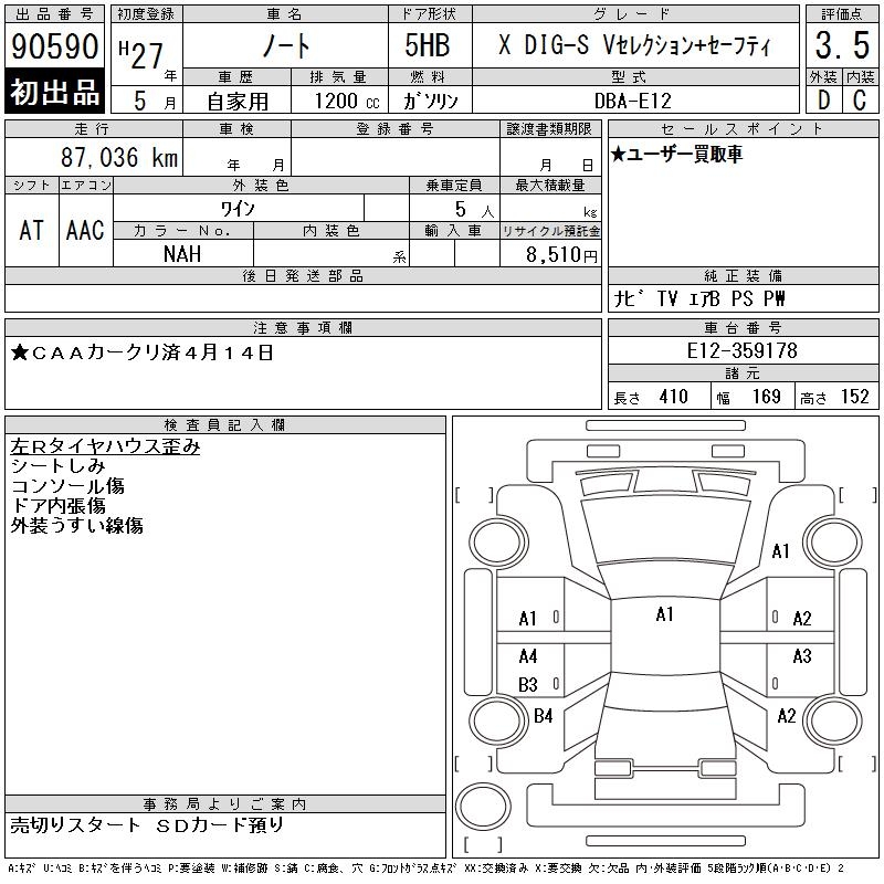 NISSAN NOTE - лот 90590