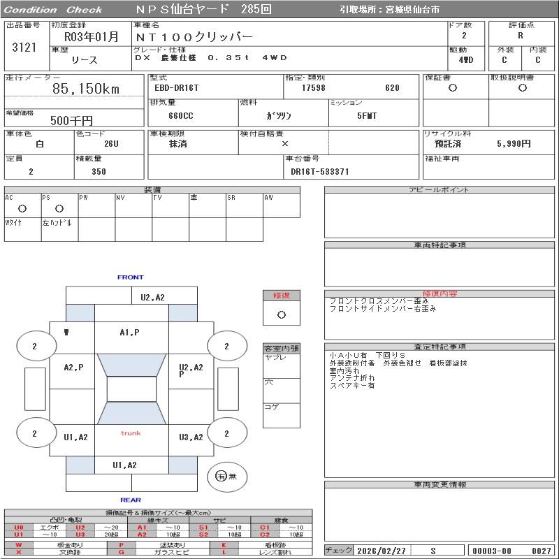 Все аукционы NISSAN NT100 CLIPPER