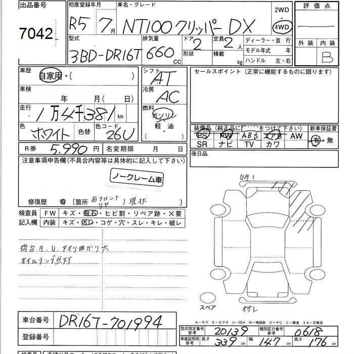 NISSAN NT100 CLIPPER 4WD DX - лот 7042