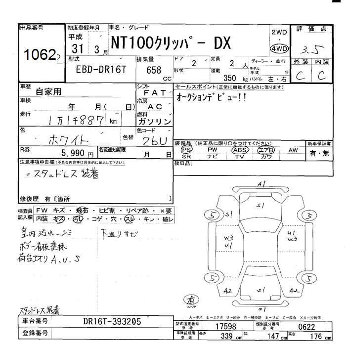 NISSAN NT100 CLIPPER 4WD DX - лот 1062