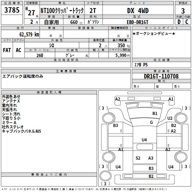NISSAN NT100 CLIPPER DX 4WD - лот 3785