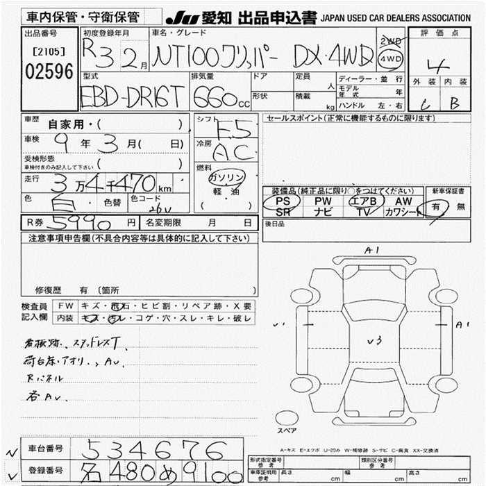 NISSAN NT100 CLIPPER DX 4WD - лот 2596